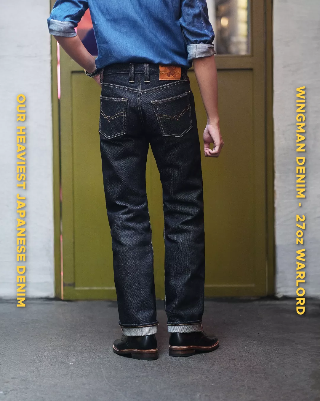 The heaviest jeans Wingman Denim ever created Made using special single big yarn and indigo rope dyed.Exclusively woven by Kaihara Mills in Japan.